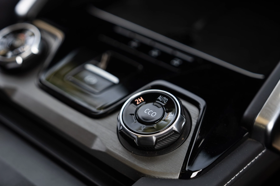 You also get a low range gearbox with multiple drive modes including four wheel drive low, four wheel drive high, two wheel drive high, and an auto mode. In terms of terrain modes, there are 10 on offer, including snow, rock, normal, sand, and mud.