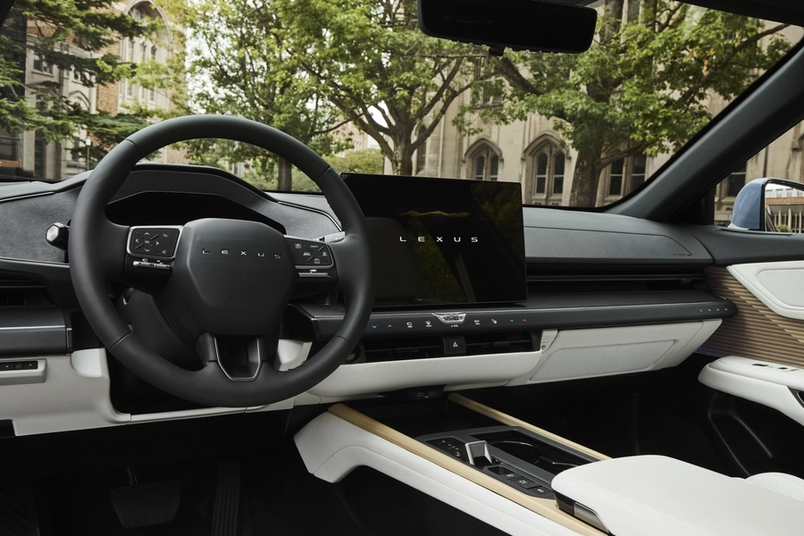 Inside the cabin, the new Lexus ES adopts a minimalist layout that continues the approach seen in the previous generation. The steering wheel has been completely redesigned and no longer features the traditional Lexus badge. Instead, the word Lexus is spelled out across the center of the steering wheel.