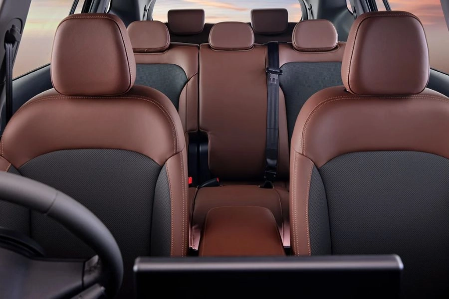 The cabin offers three rows of seating. The second row is both reclinable and slidable with a 60:40 split, while the third row gets a 50:50 split. Practicality is a strong point, with boot space rated at 126 litres with all three rows up, expandable up to 1,260 litres with seats folded. Additional features include cup holders and a centre armrest. The interior is offered in two colour options: Black and Brown.